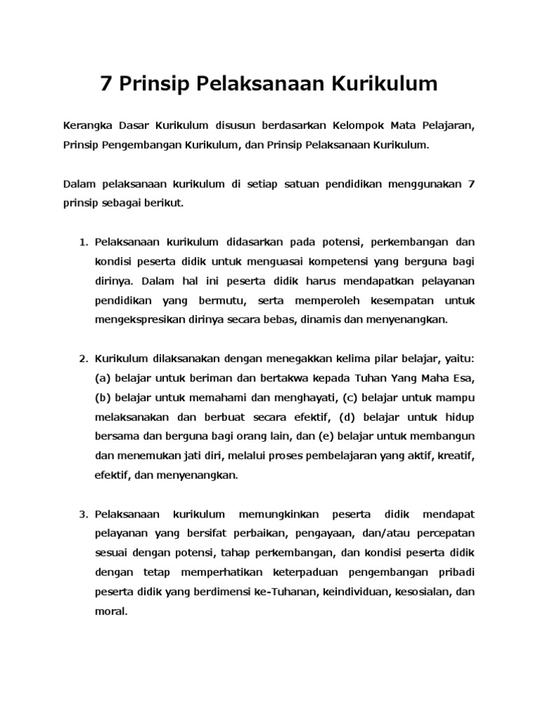 7 Prinsip Pelaksanaan Kurikulum Pdf