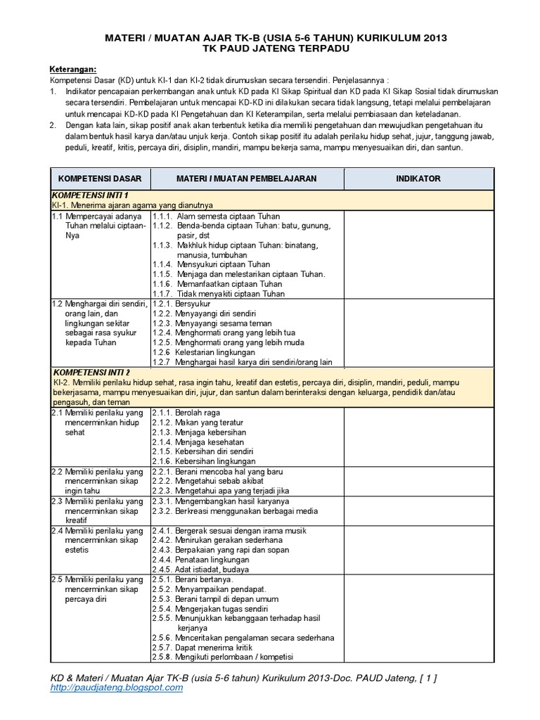Top Pdf Muatan Ajar Tk B Kurikulum 2013 Paud 123dok Com