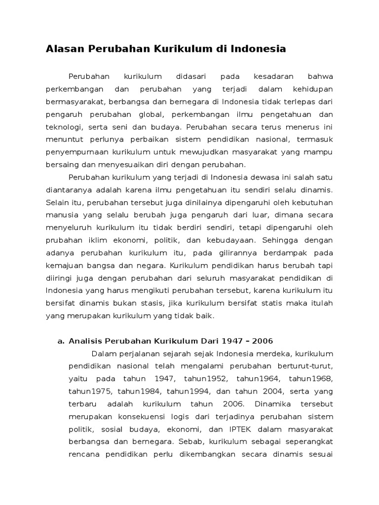 Alasan Perubahan Kurikulum Di Indonesia Pdf