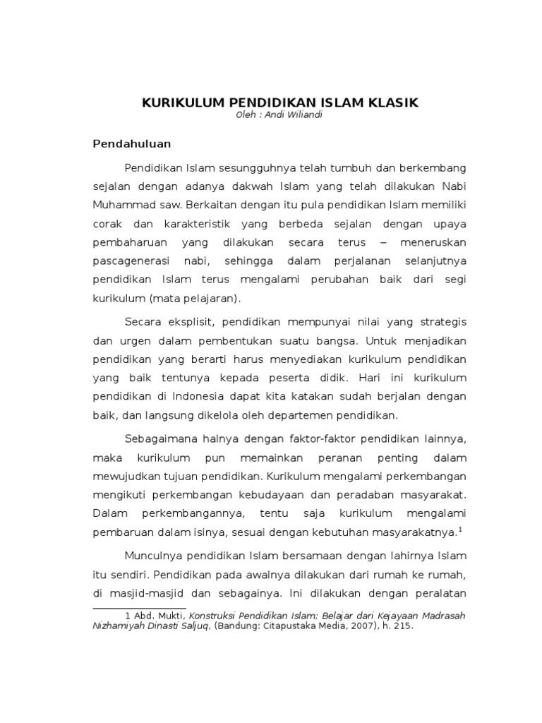 Pdf Kurikulum Pendidikan Islam Masa Klasik