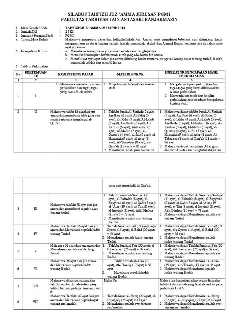 Silabus Tahfizh Juz Amma Jurusan Pgmi
