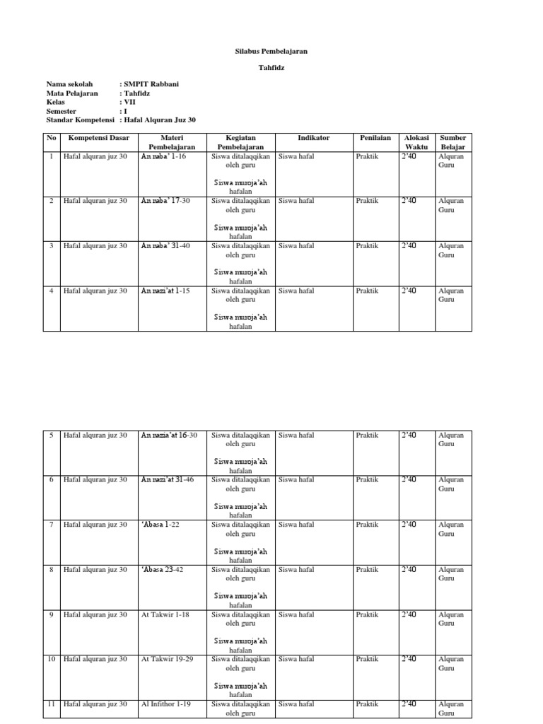 Silabus Pembelajaran Tahfidz Pdf