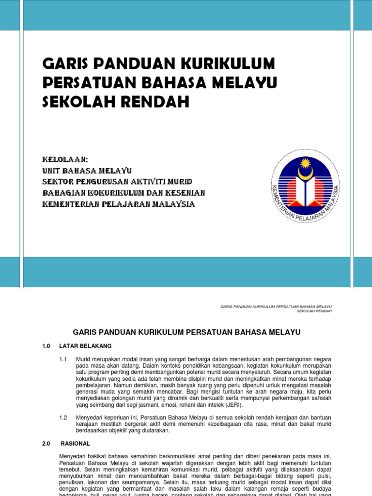Kurikulum Persatuan Bahasa Melayu Sekolah Rendah Pdf