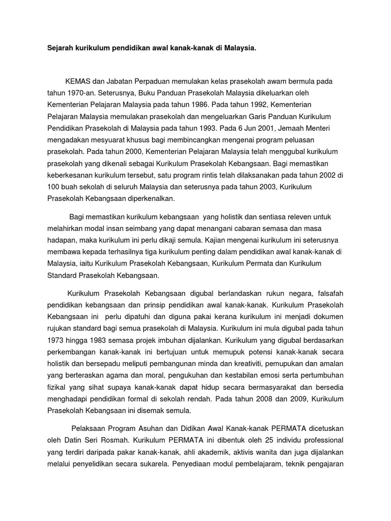 Sejarah Kurikulum Pendidikan Awal Kanak Pdf