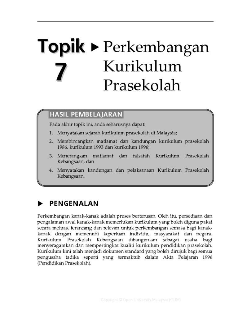 Sejarah Kurikulum Pendidikan Awal Kanak Pdf