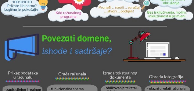 O Radionica - Domene u kurikulumu predmeta informatika Dobitnika značke. Sadraj a opis nastavnoga predmeta informatika 5 b odgojno-obrazovni ciljevi uČenja i pouČavanja nastavnoga predmeta informatika 7 c domene u organizaciji predmetnoga kurikuluma informatike 8 a. Ono kod učenika razvija vještine logičkog zaključivanja modeliranja apstrahiranja i e-Društvo.