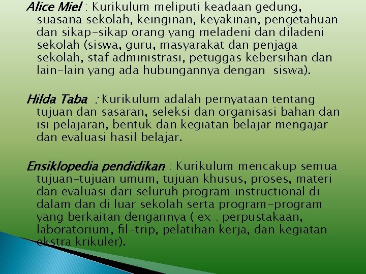 Secara singkat menurut Nasution kurikulum adalah suatu rencana yang disusun untuk melancarkan proses belajar mengajar di bawah bimbingan dan tanggung jawab sekolah atau lembaga pendidikan beserta. Direncanakan untuk pembelajaran anak-anak. Sistem penyampaian yang digunakan oleh guru adalah sistem penuangan Imposisi3 Sedangkan menurut pandangan baru menyatakan curriculum is.
