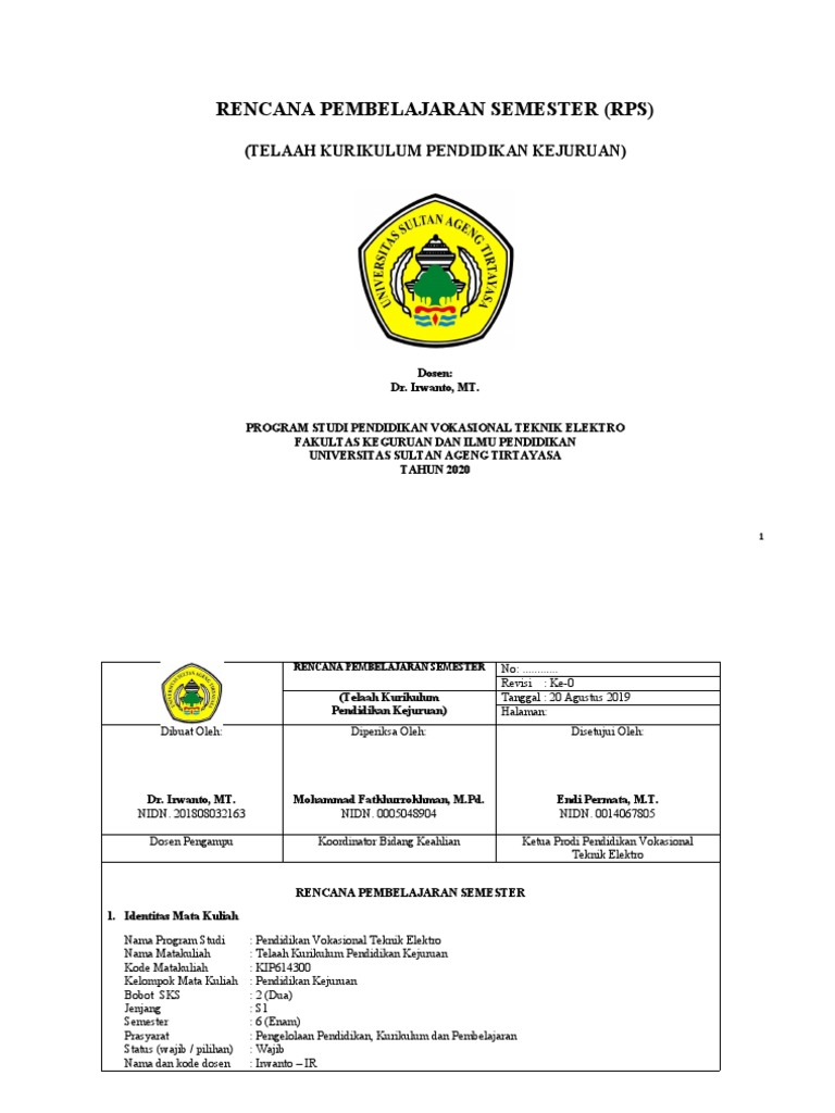 Pert 1 Rps Telaah Kurikulum Pendidikan Kejuruan Pdf