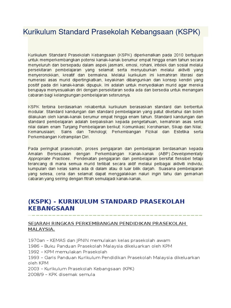 Kurikulum Standard Prasekolah Kebangsaan Kspk Pdf