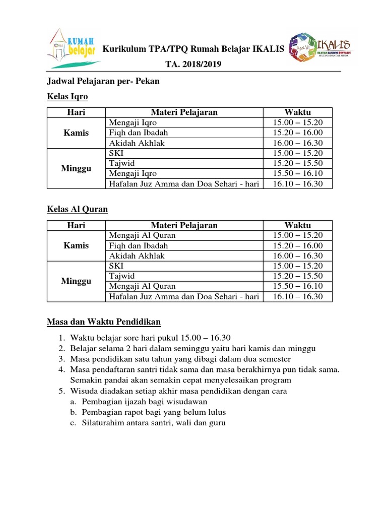 Struktur Kurikulum Tpq Taman Pendidikan Al Qur An Atau Tpa