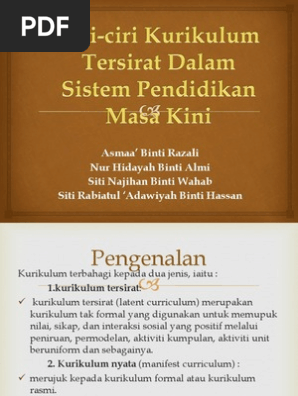 Ciri Ciri Kurikulum Tersirat Dalam Sistem Pendidikan Masa Kini Pdf