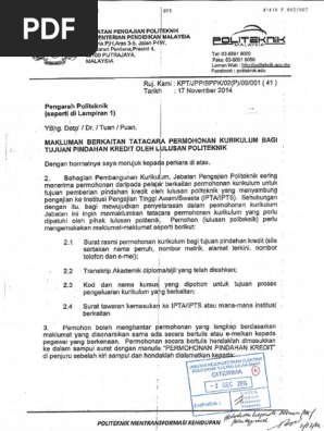 Surat Tatacara Mohon Kurikulum Untuk Pindah Kredit Pdf